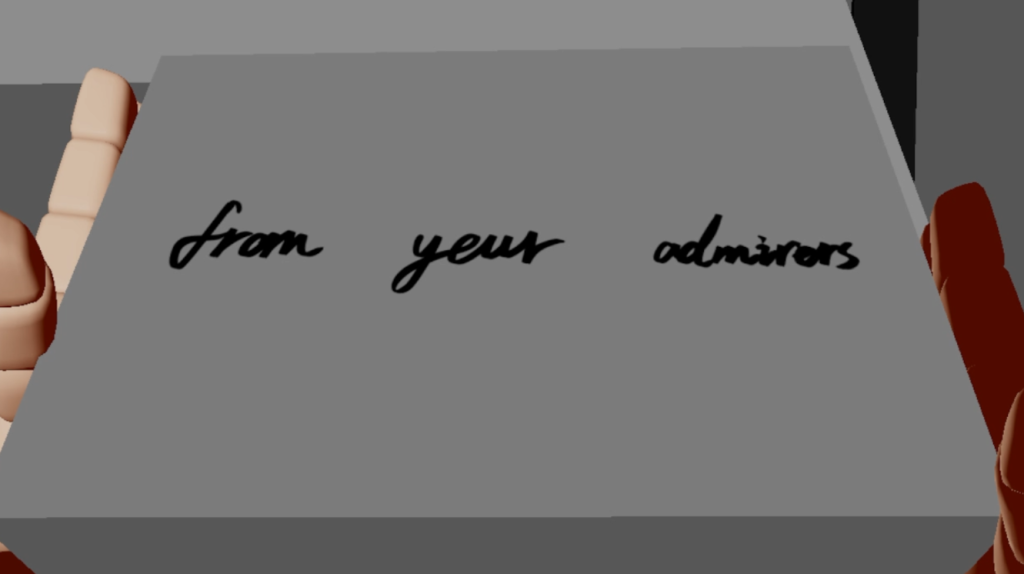 This is the final effect. I divided the cutscene into two parts. When the character dropped the box on the table, I deliberately made a “throwing” action, which is more flexible.