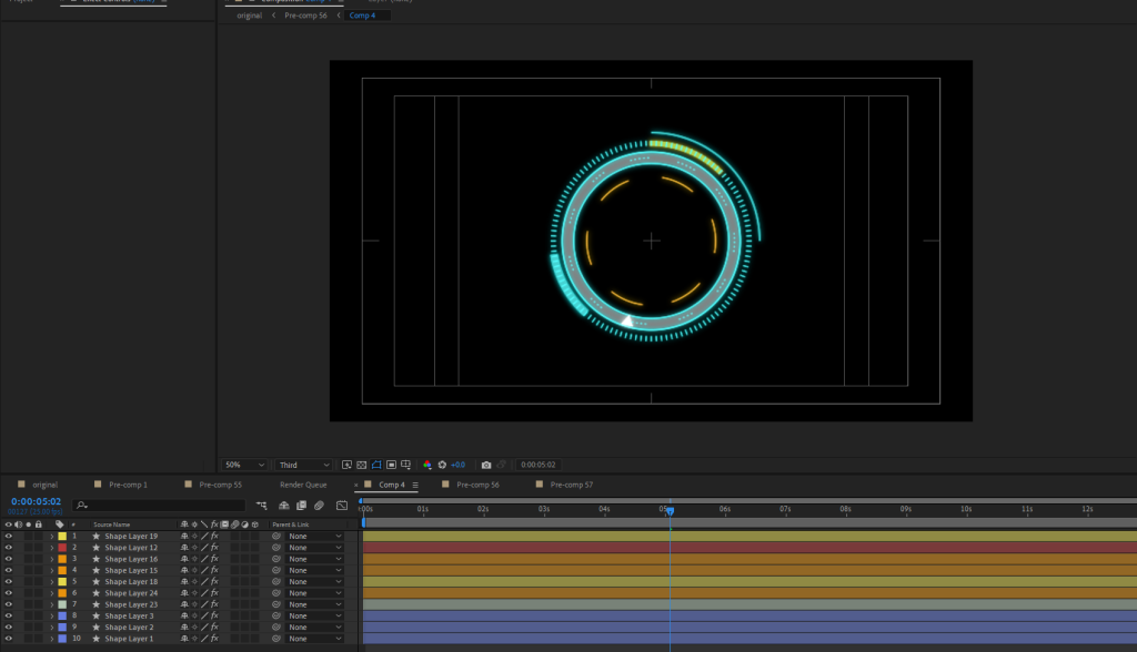 Because my robot arm design is simple, it was a bit boring after adding it to the screen. Thirty-five seconds of animation could add more interesting effects, so I added some attractive mechanical lights to the background, which is also a kind of animation, to make the screen look less boring.